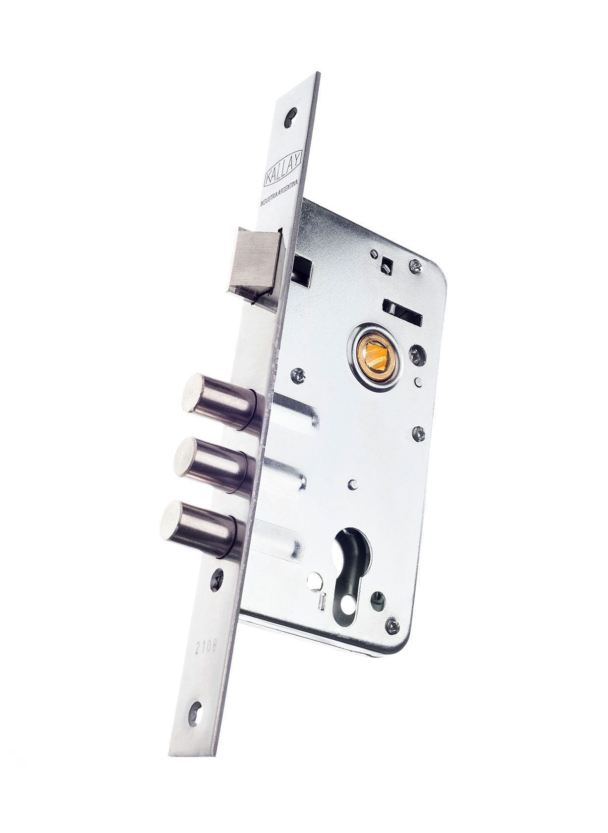 Cerrojo de tres pernos giratorios de acero trefilado.
