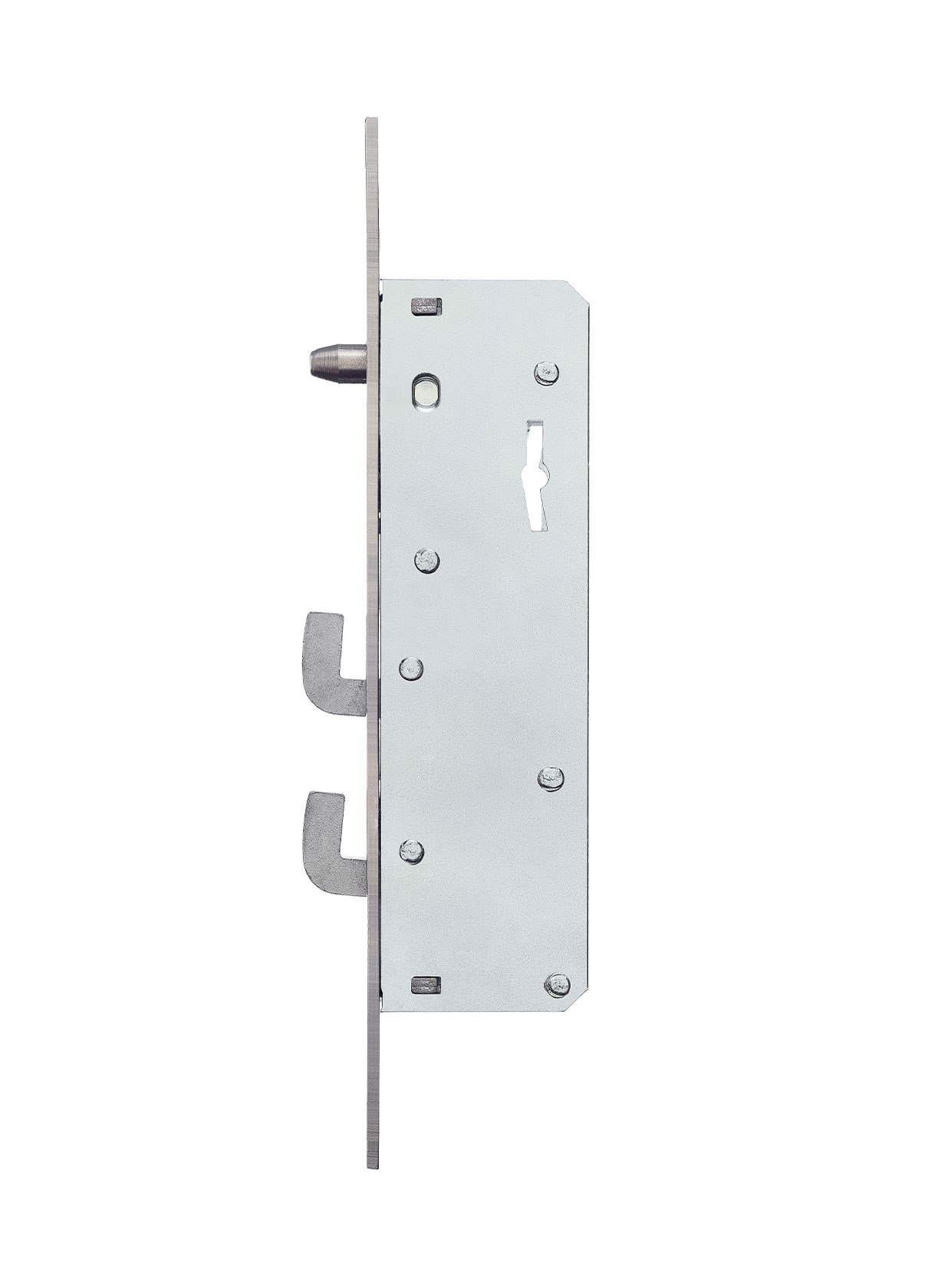 Cerrojo de enganche en acero sinterizado mediante dos trabas que accionan hacia arriba.