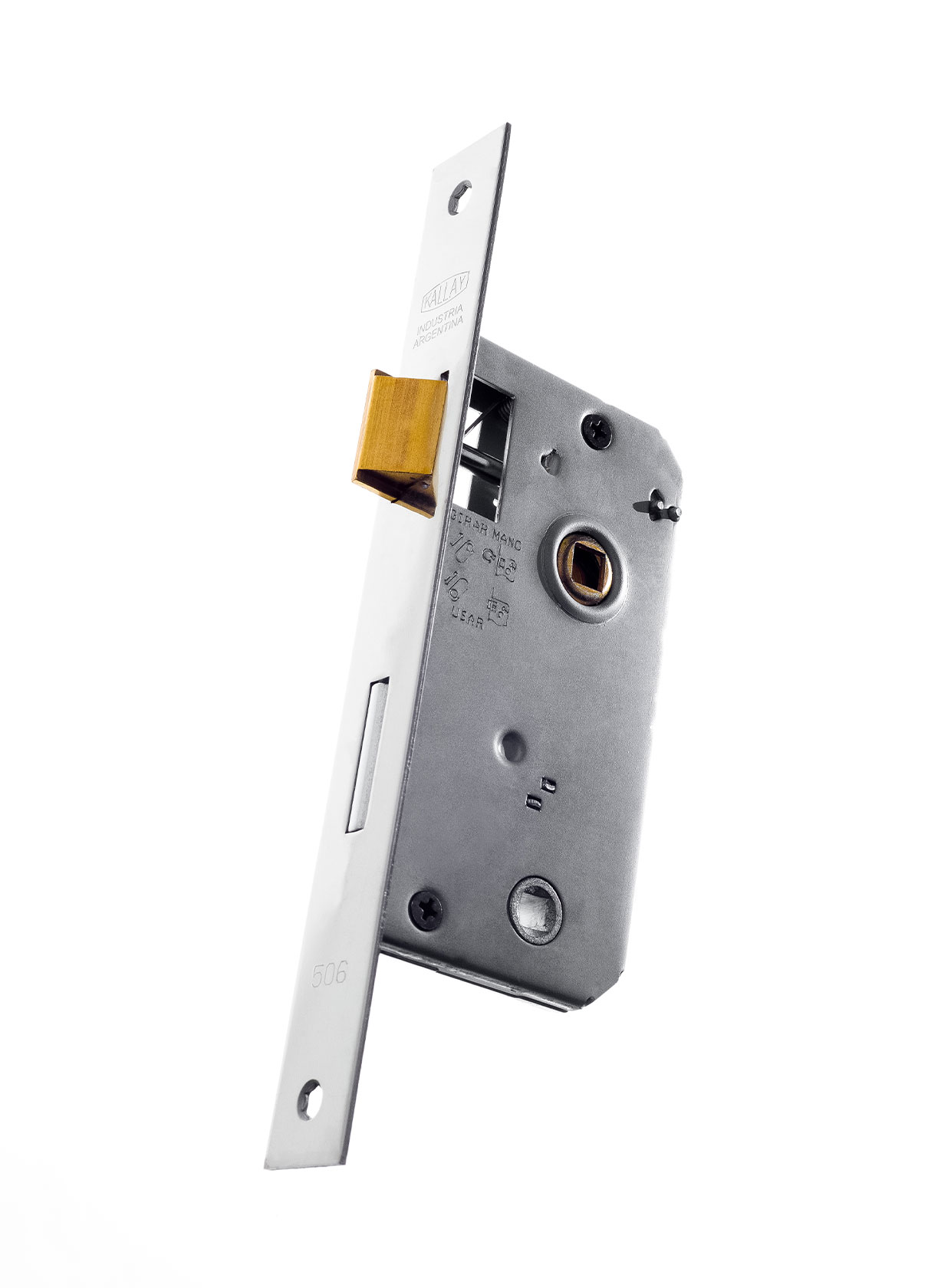 Pestillo entero con punta de bronce trefilado, reversible desde el exterior.Cerrojo rectangular de acero laminado.Caja y piezas interiores con protección galvánica de zinc electrolítico.Sin llave para colocar perilla.Para embutir.Frente ancho.